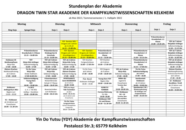 Bambini-Dragon- Kurs verinnerlicht wurden, beginnt das Training in unseren